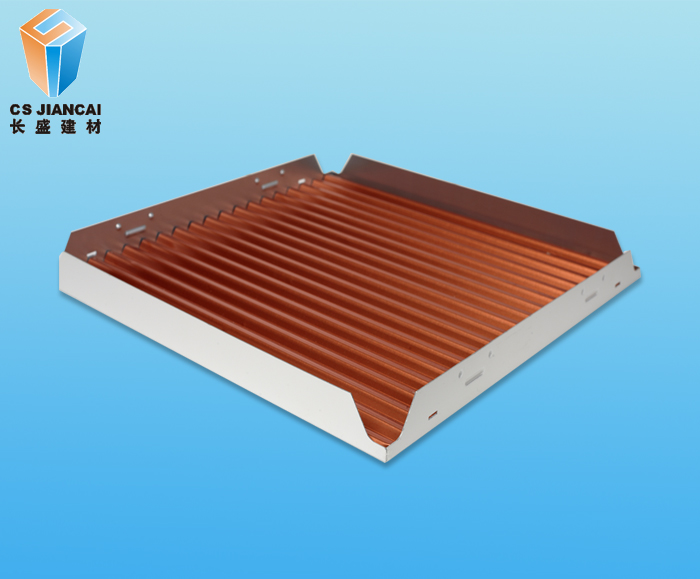 扣式鋁瓦楞板與鋁扣板造型十分類似,安裝方式可以說沒有什么兩樣,使用最簡單的龍骨扣緊就完成了,其效果有防火,隔音,防潮,防油污。既然說了是扣式安裝法,那么扣式大部分是用作天花吊頂使用,極少數用作幕墻。